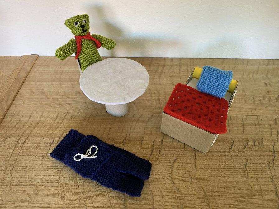 Hele sidste vinter og forår er der blevet strikket af garnrester, og nu er det tid til at sy Bamse BIB sammen og fylde den med vat.